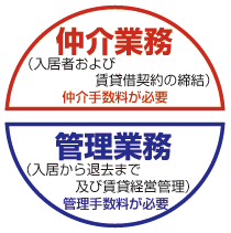管理業務委託契約(入居者募集から退去等までの一連の業務の委託についての契約)を締結して頂ければ、宅地建物取引業にあたる「入居者の募集から賃貸契約(鍵の引渡)まで」(媒介業務)とそこから先の「家賃集金から退去業務まで」(管理業務)の一連の業務を円滑に進めることができます。(各業務の報酬も別々のものとなります)