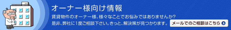 なお、入居者募集から賃貸借契約(鍵の引渡)までは宅地建物取引業法で規制された「宅地建物取引業者」の媒介業務ですが、そこから先の退去までの管理業務は特に法的規制がありません。だからこそ、不動産の専門知識やノウハウをもっている当社にご相談いただければ、オーナー様は安心して賃貸経営を行うことができます。 当社までぜひお気軽にご相談下さい。 |